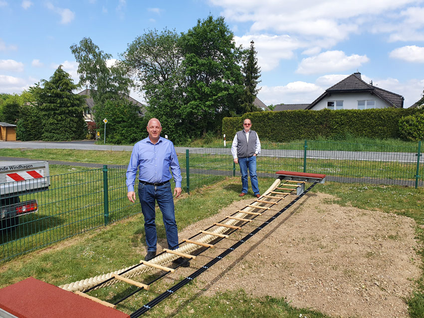 Während der Schließung der Spielplätze wegen der Corona-Pandemie hat dann der Windhagener Bauhof die Vorarbeiten durchgeführt, so dass nun das neue Spielgerät in Betrieb genommen werden konnte.